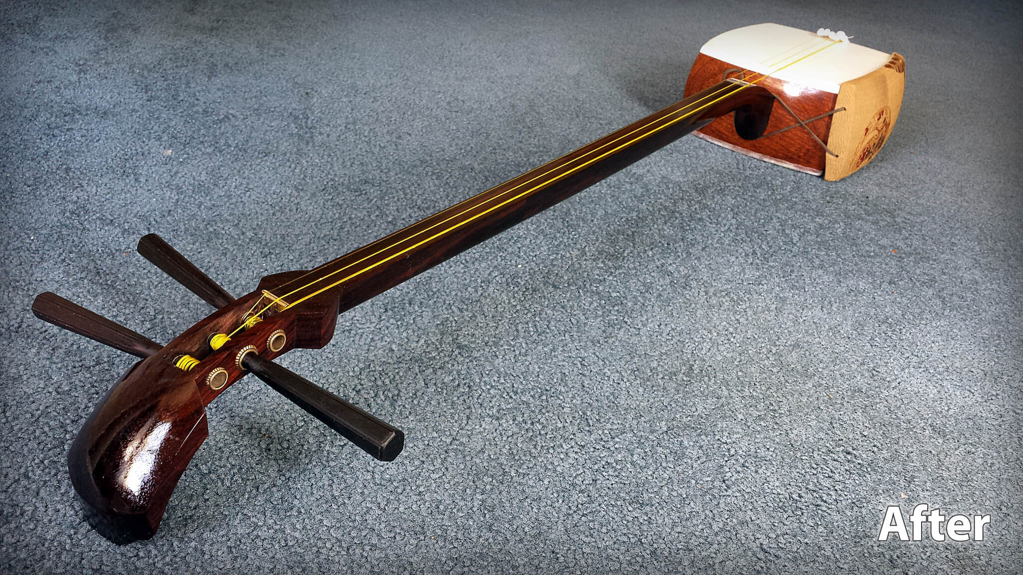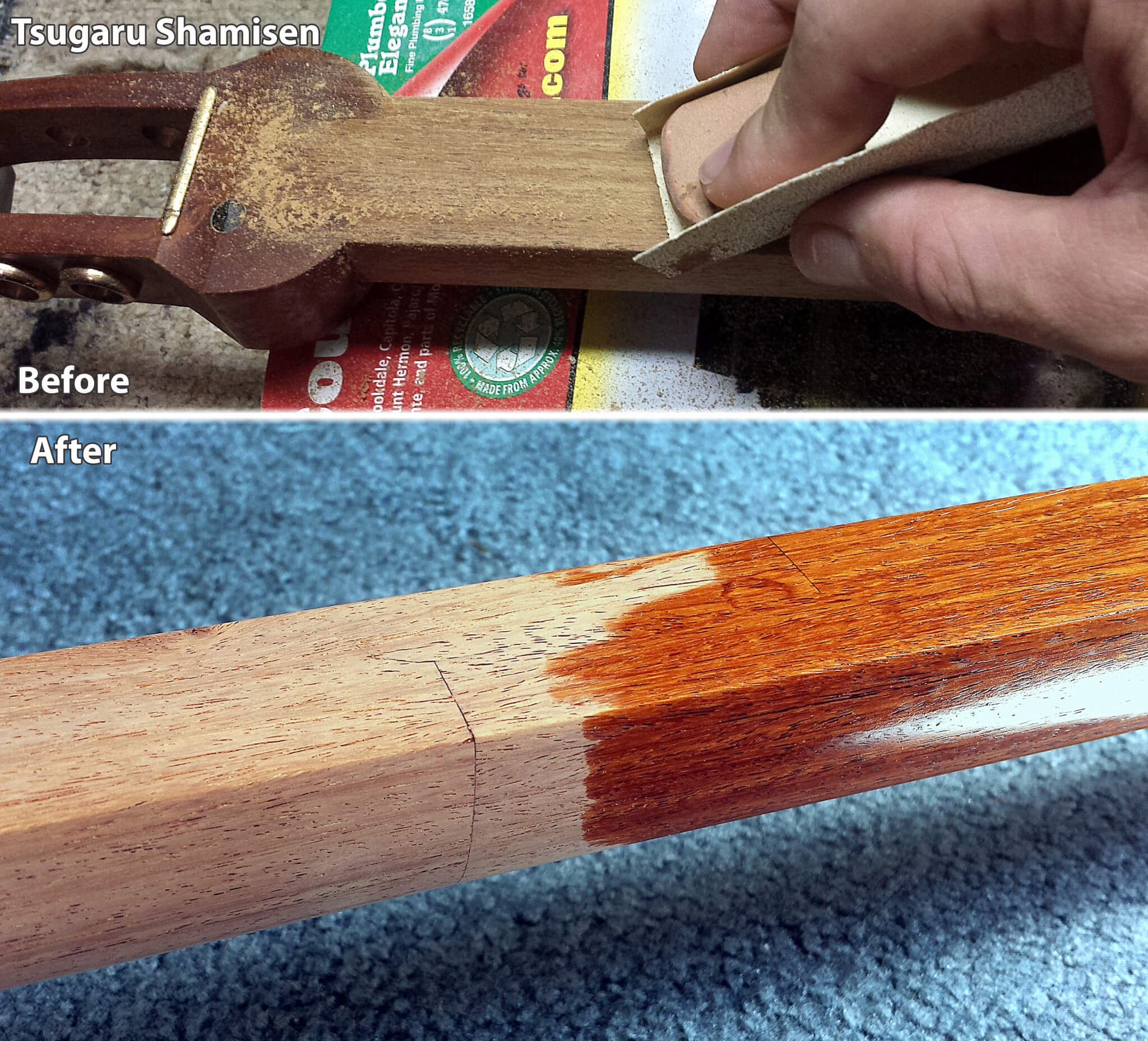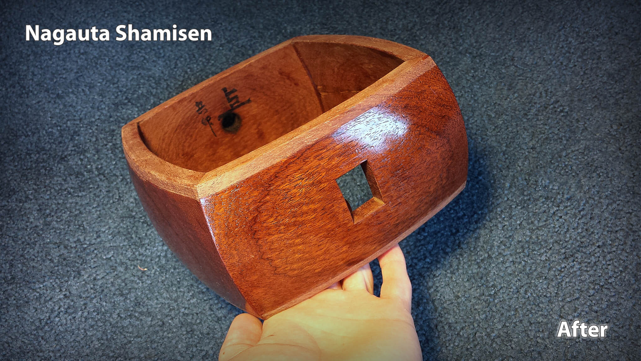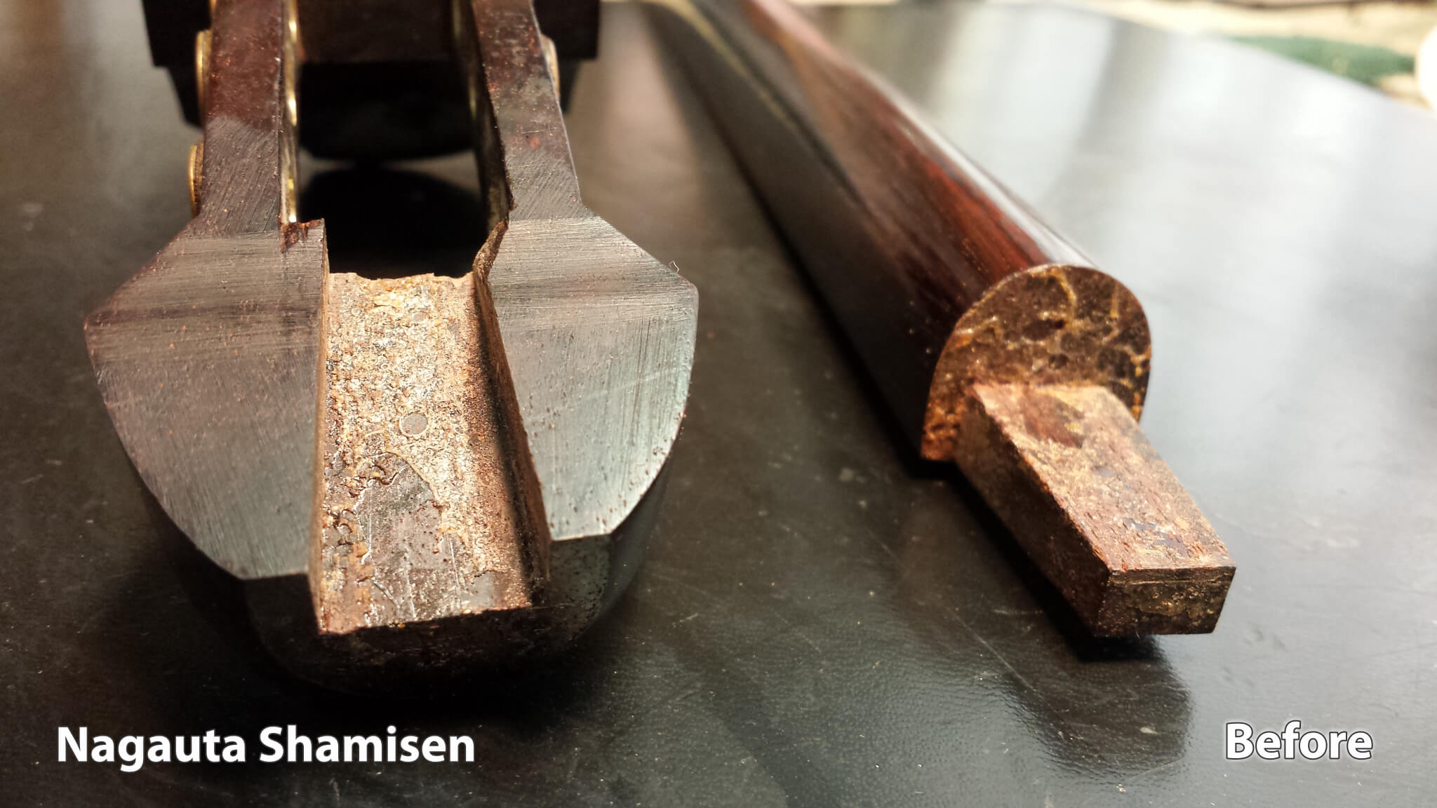 Do you have a friend or family member with an antique shamisen sitting broken and dusty in the closet? Is your own shamisen in such disrepair, it’s unplayable? Even though a shamisen is broken into many pieces, often it can be restored to a shiny and like-new condition.
