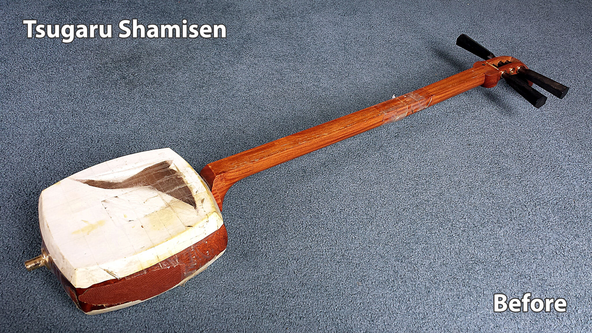 Since 2006, Kyle Abbott has built ten shamisen by hand, and has repaired hundreds more. Take a look at two shamisen, both arrived at Bachido HQ with a ruptured skin and broken joints. With careful work, Kyle restored them to new condition with a fresh, resonant tone!