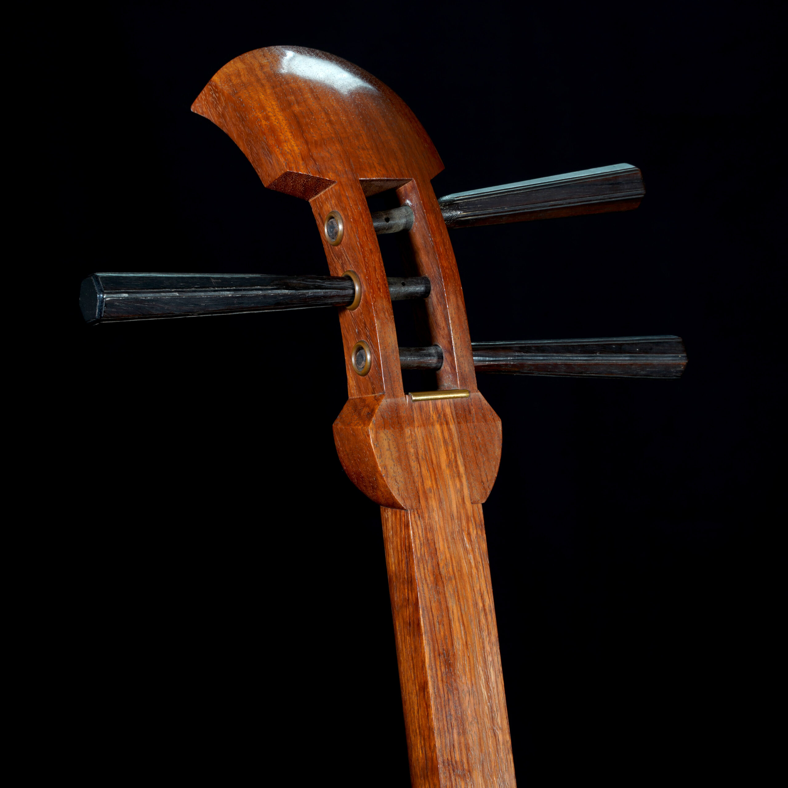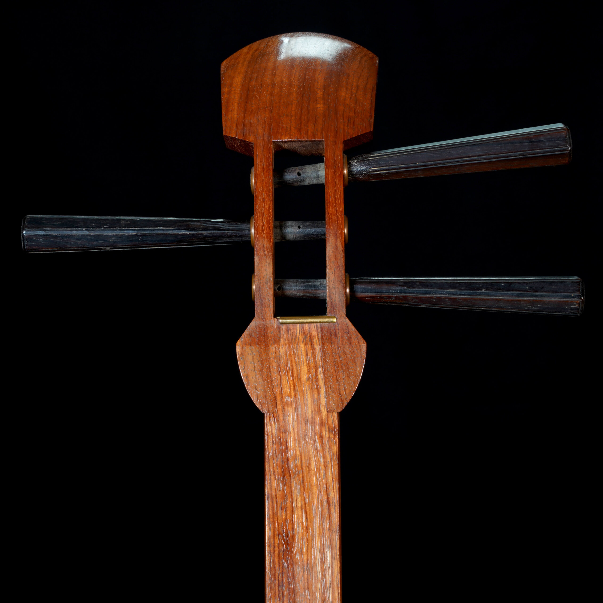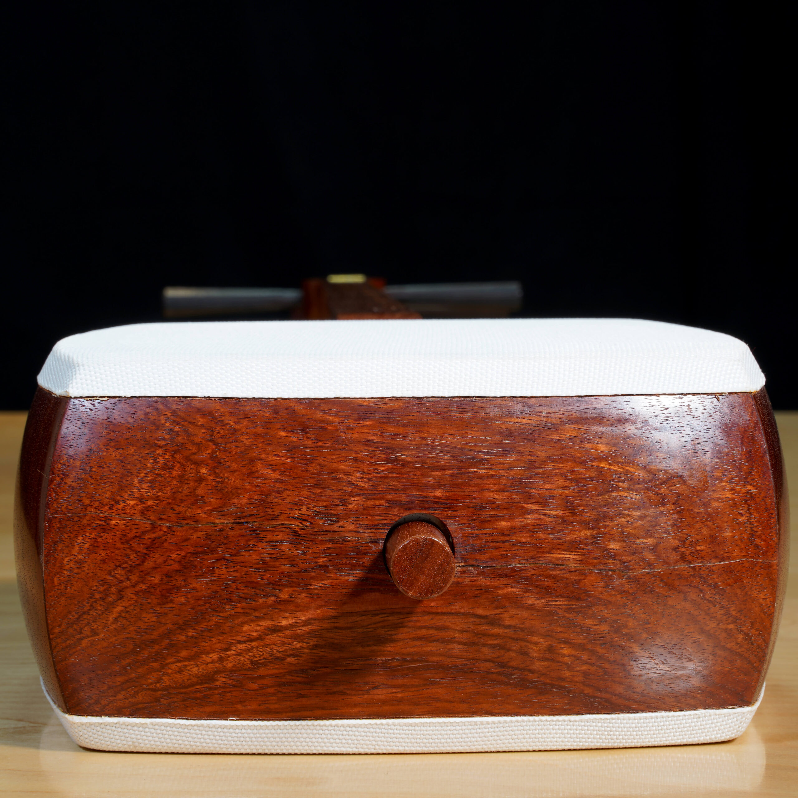 Important note: Previously we had accidentally shipped the dou (soundbox) with a larger sao. Not knowing they were mismatched, the customer innocently used their strength to jam the sao into the dou, cracking the wood of the bottom board (with the round hole). Needless to say, we sent them a replacement shamisen, and I repaired the dou in California.