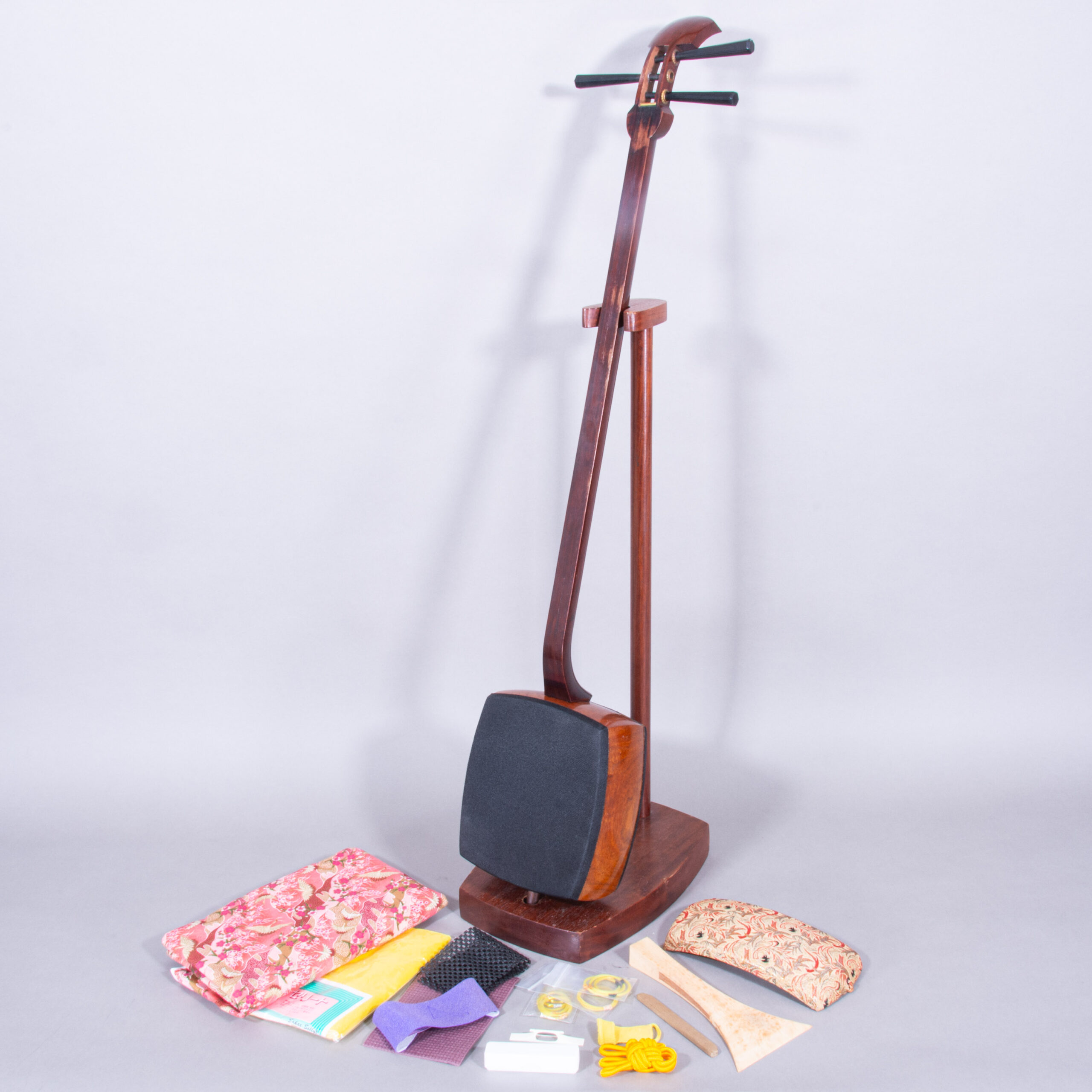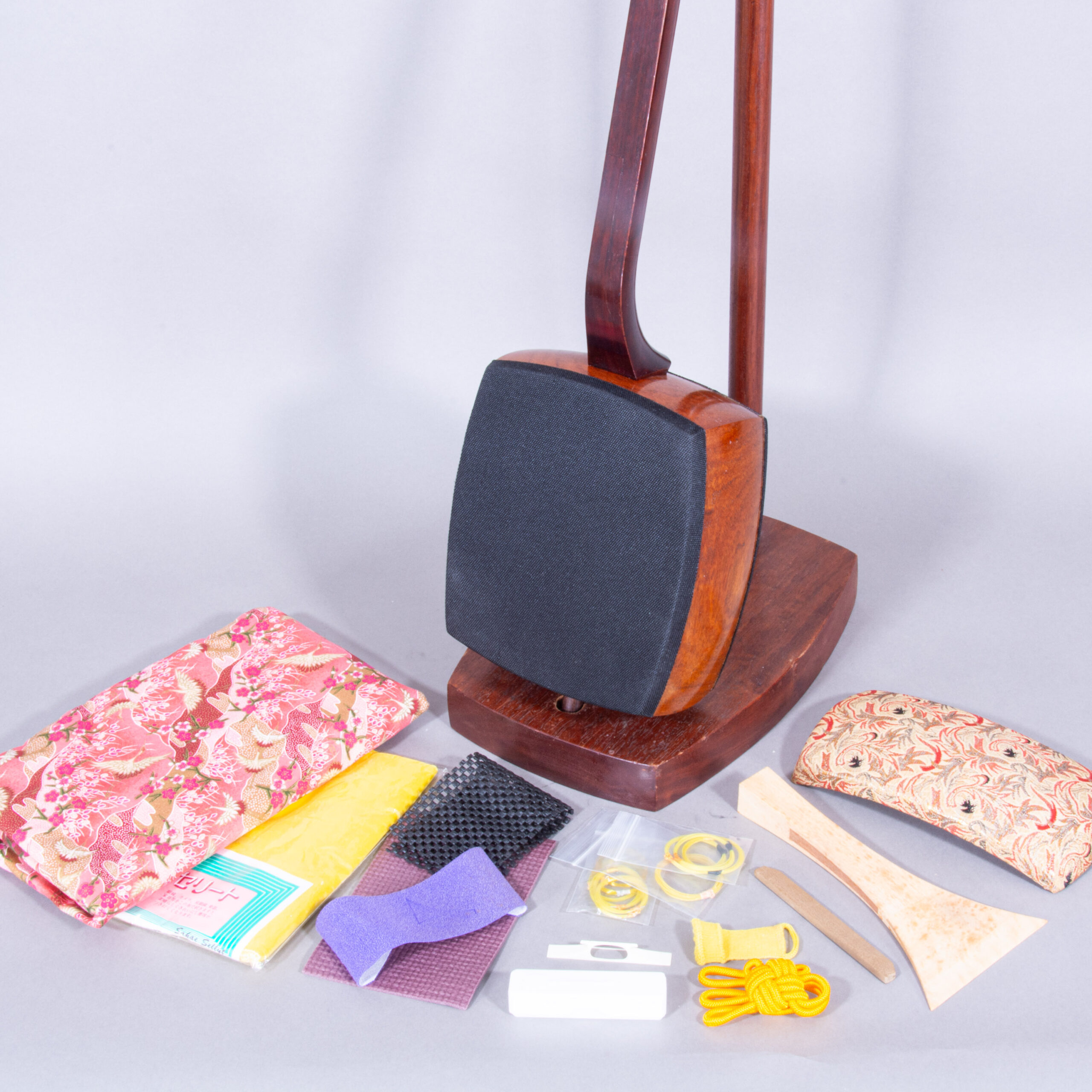 Included is a refurbished Bachi, ebony Itomaki tuning pegs, Doukake protector, Yubikake finger sleeve, complete Ito string set, Dou Gomu protective pad, Neo, Koma, Fujaku Strip and a Naga Fukuro storage bag.