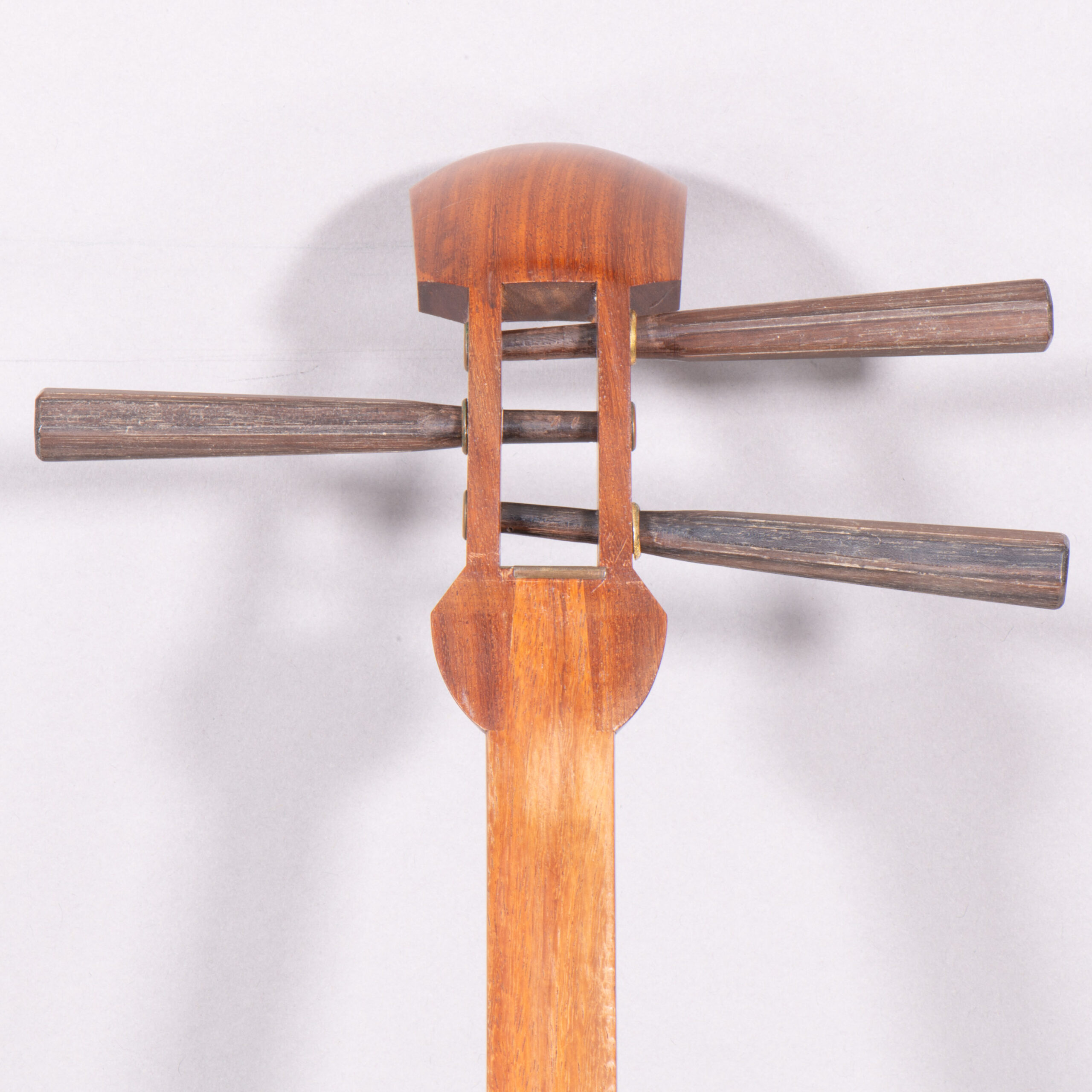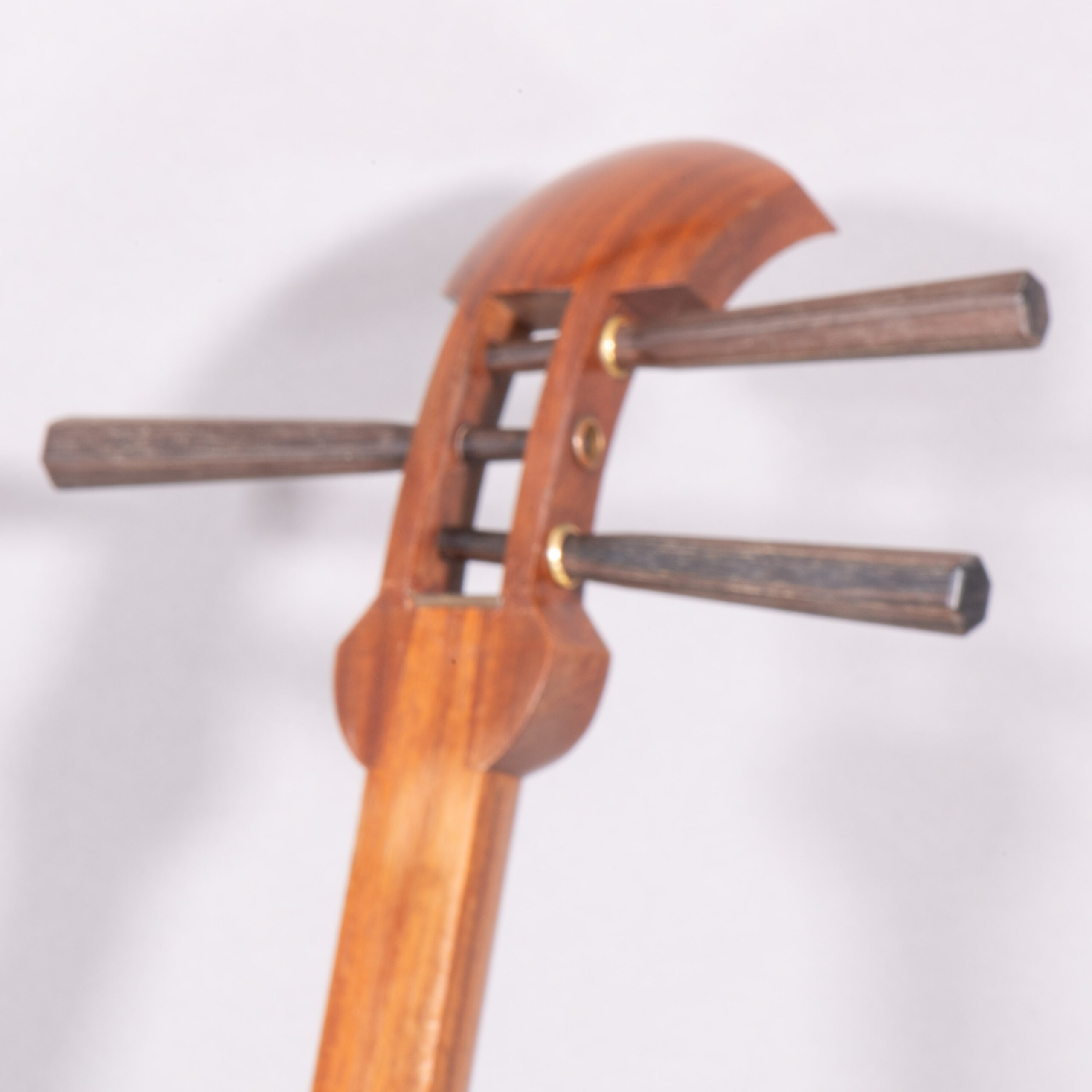 This shamisen has several light scratches, a couple of chips, and some parts of the lacquer is faded, which doesn’t affect play or longevity.