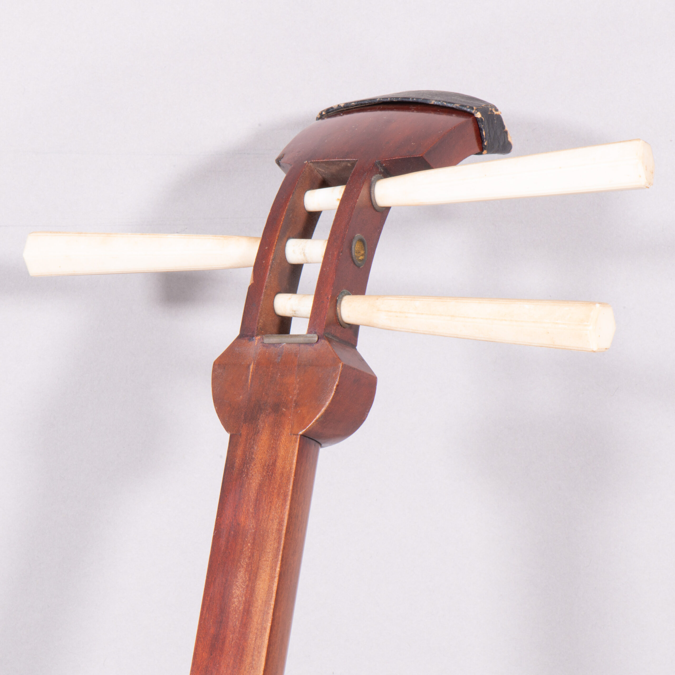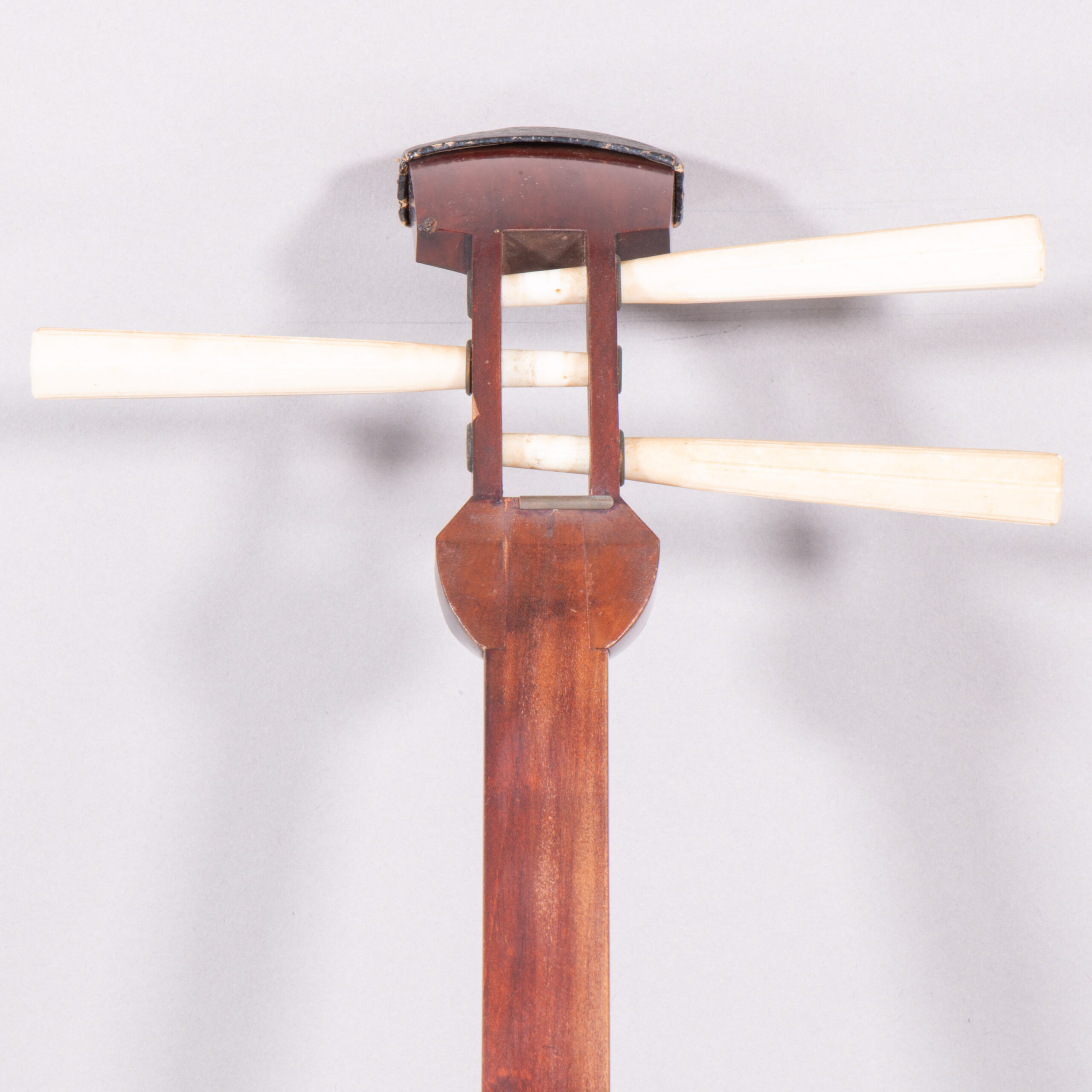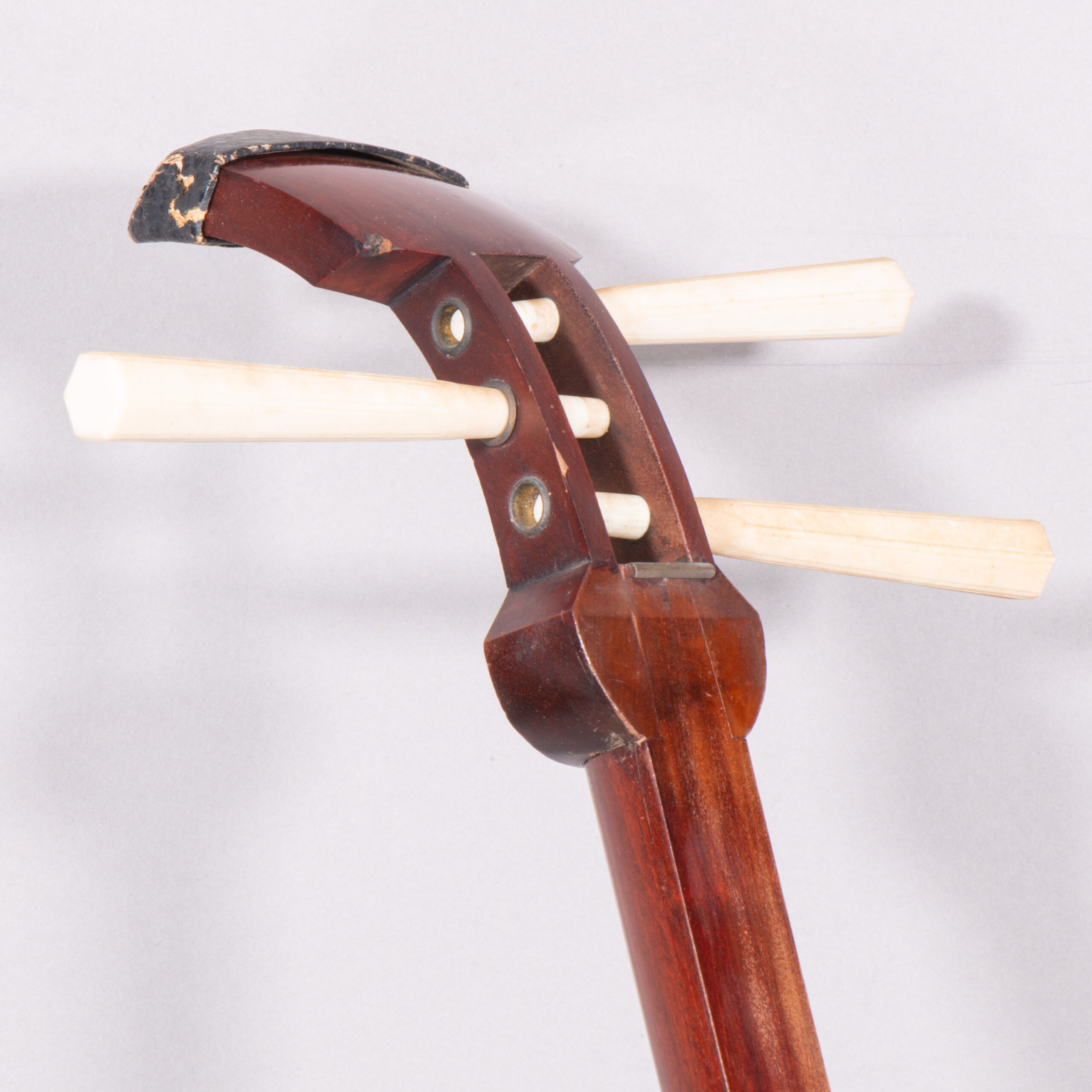 This shamisen has several light scratches, and light kanberi (worn out fingerboard), and some wearing out of the lacquer, which doesn’t affect play or longevity.