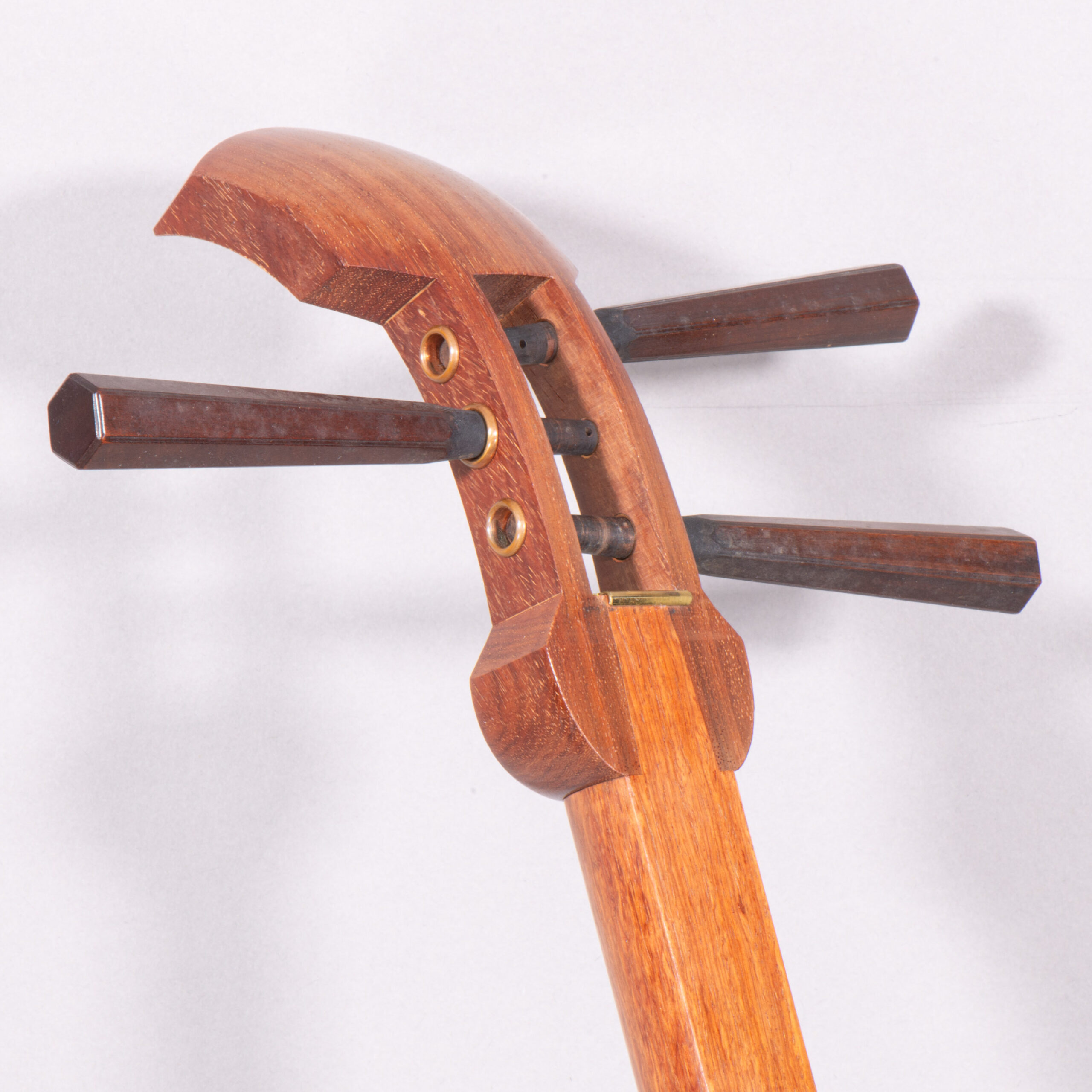 This shamisen has a light scratch, a light dent in the wood, and a small stain in the wood, which don’t affect play or longevity.