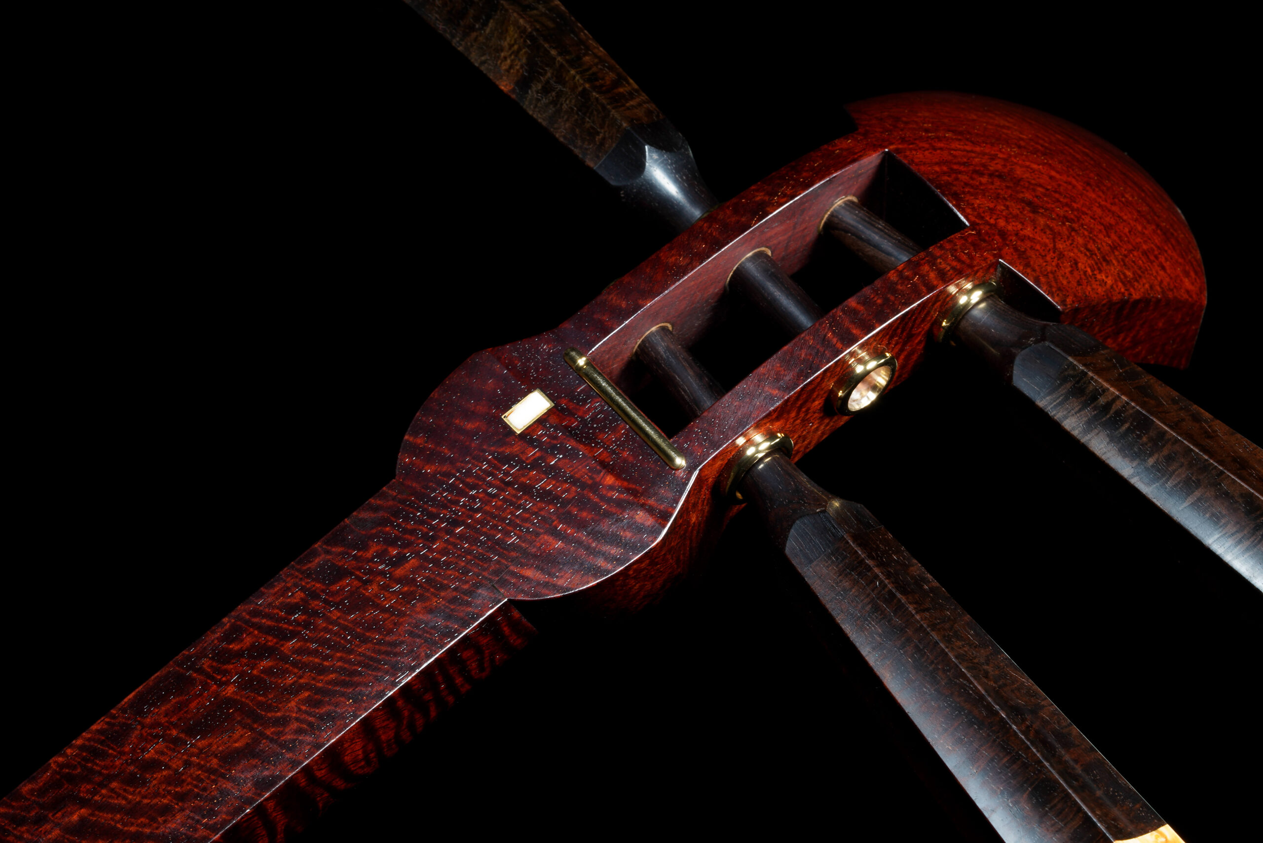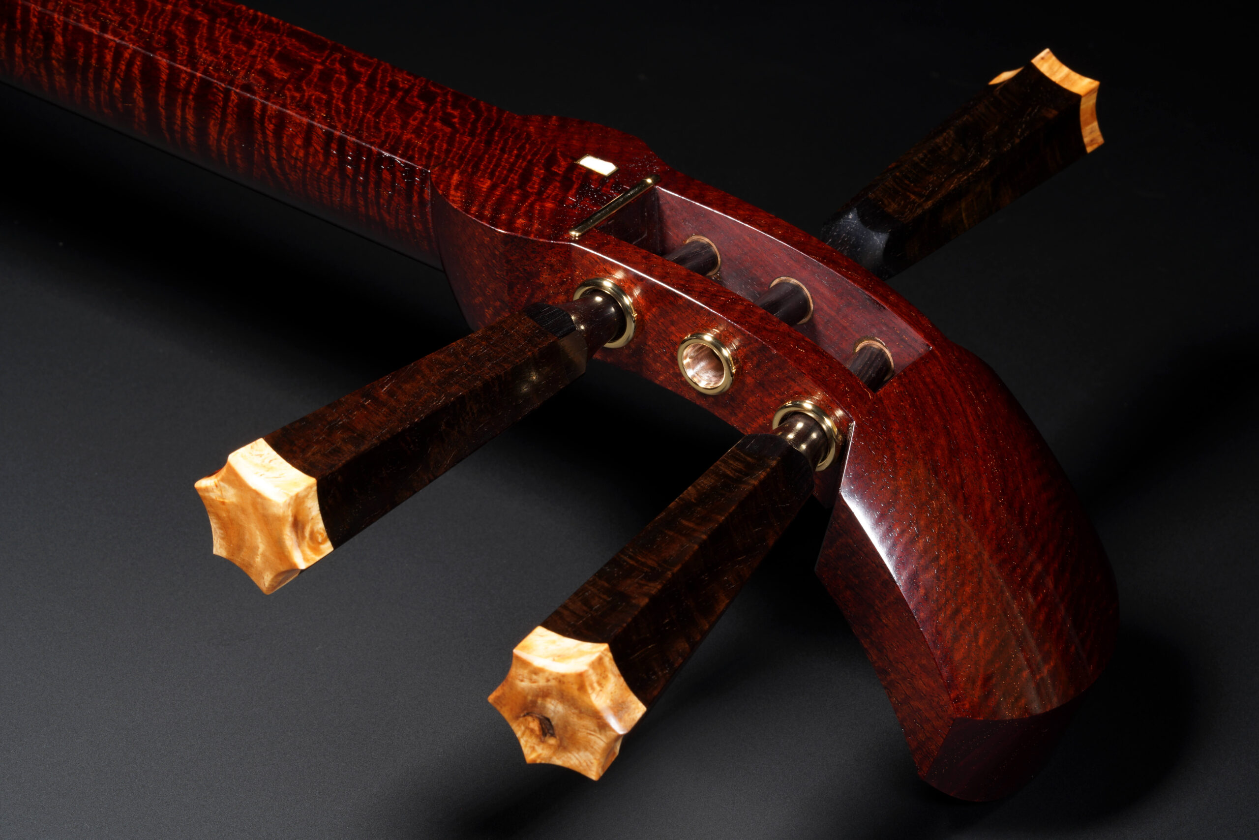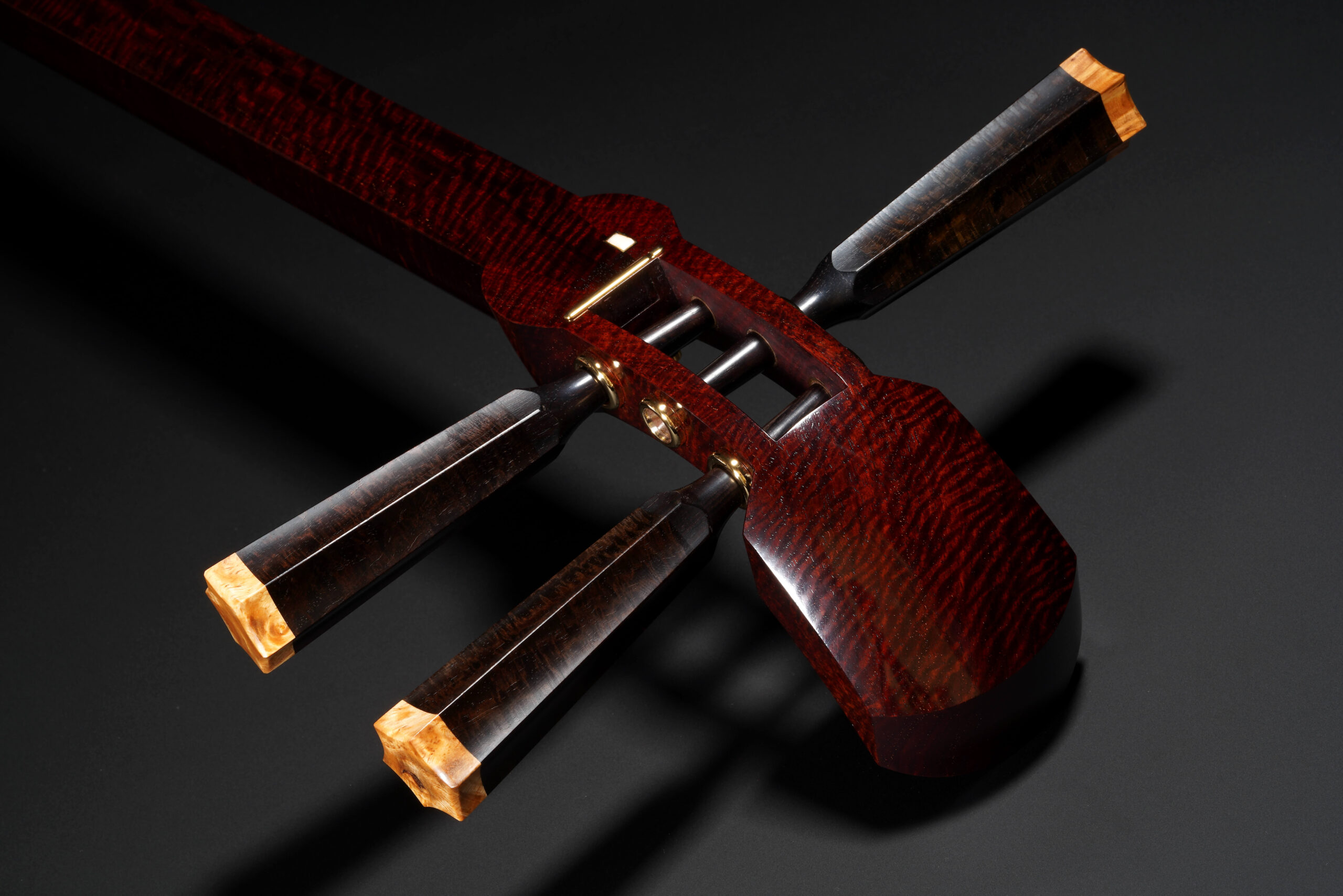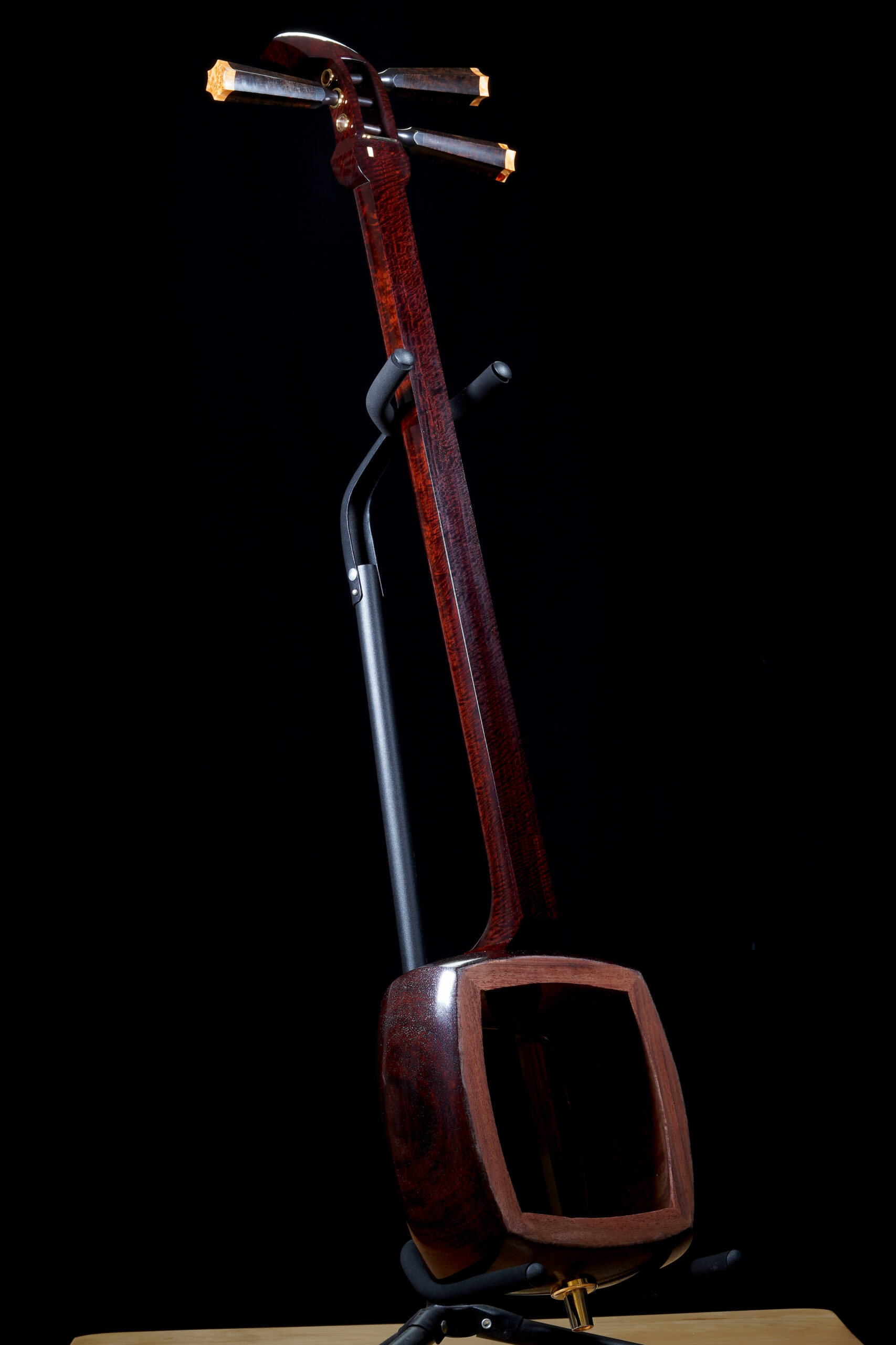 The Hardware: As well as the standard rindo, zagane, and azuma sawari, this shamisen also features kinbozo (gold-plated fittings) in the joints, traditionally reserved for only the highest-tier instruments.