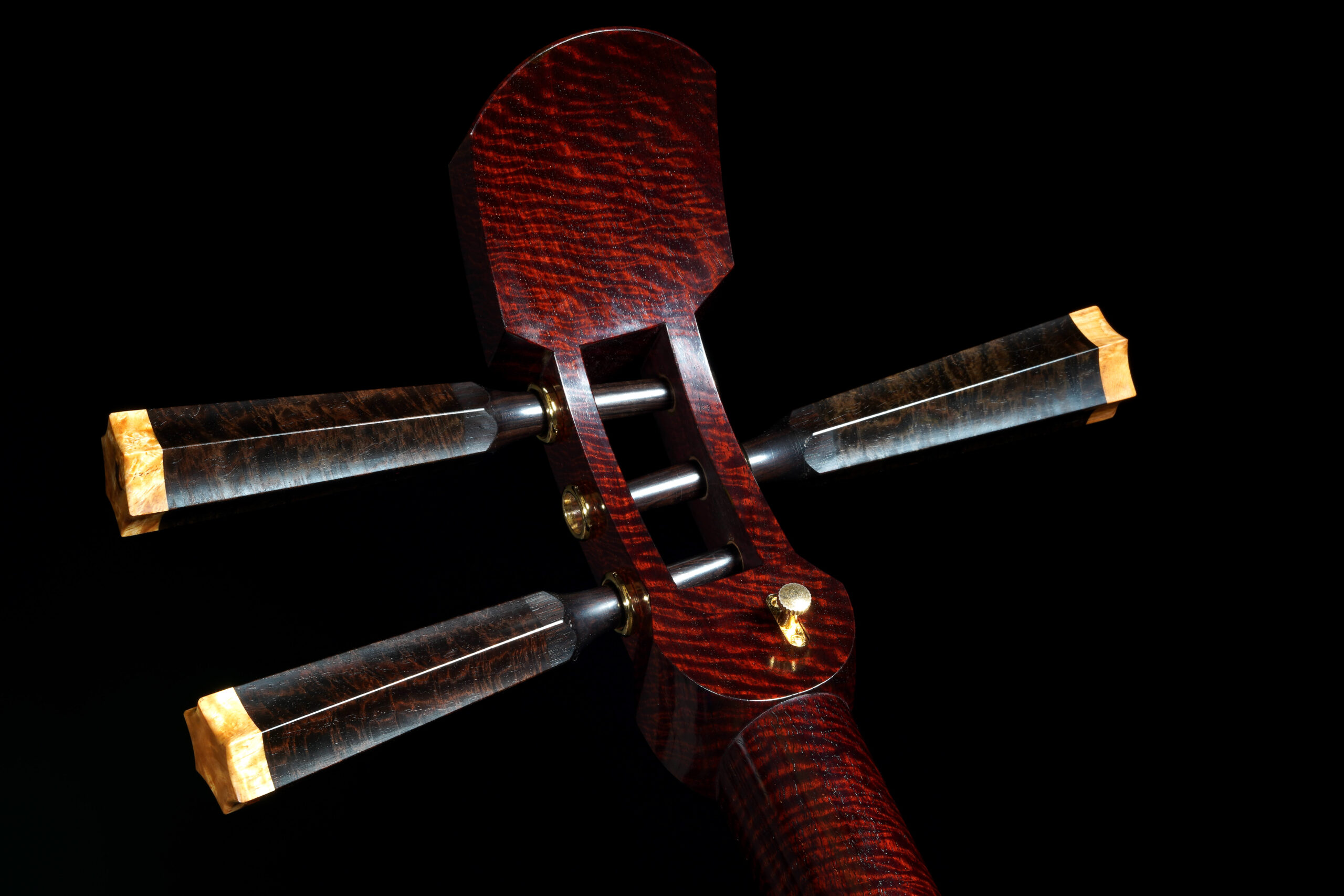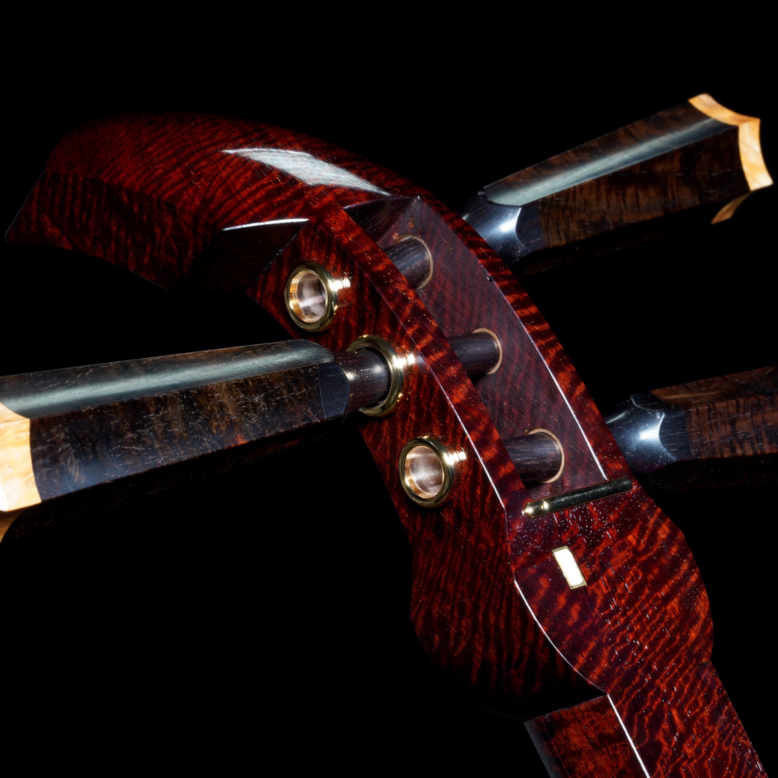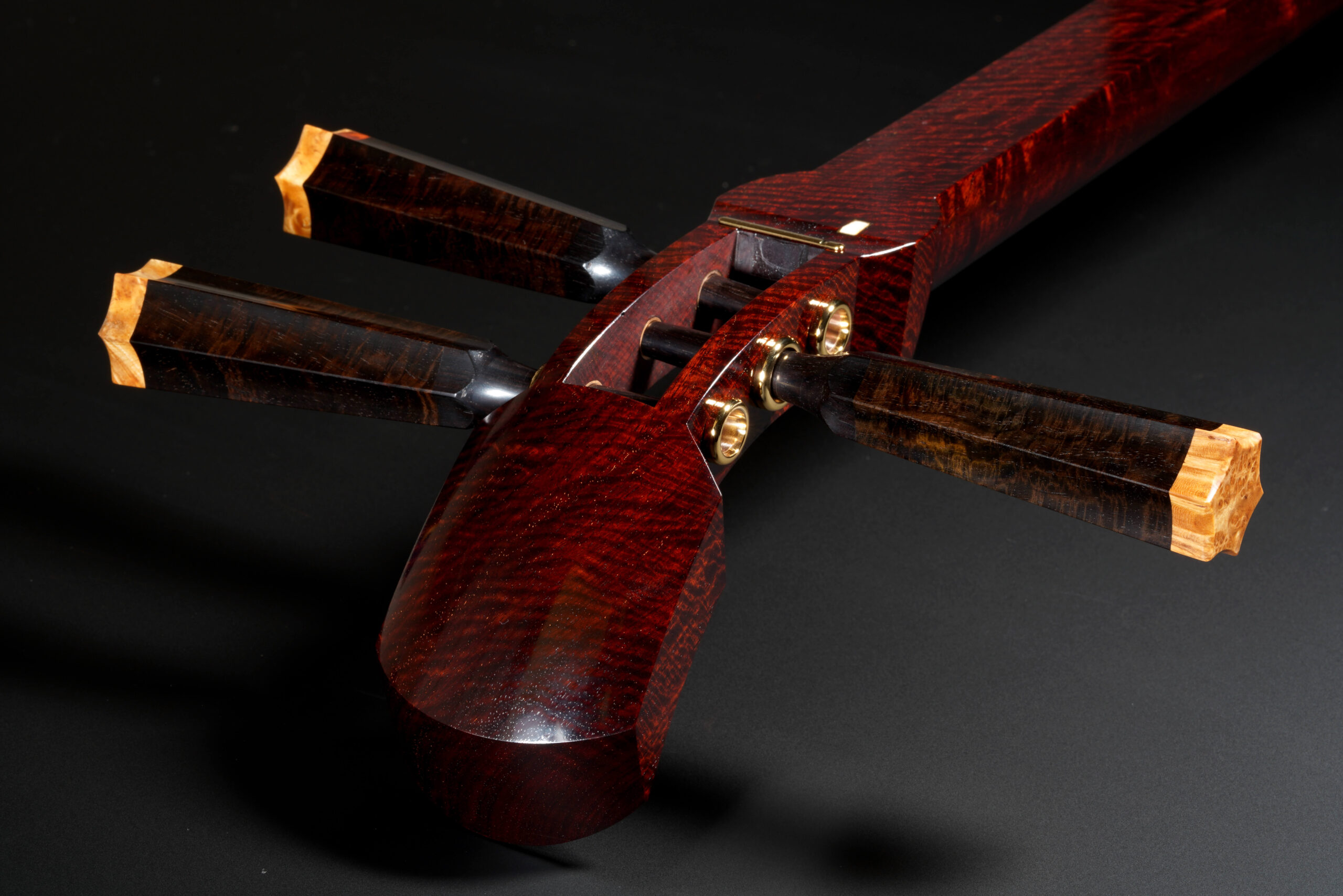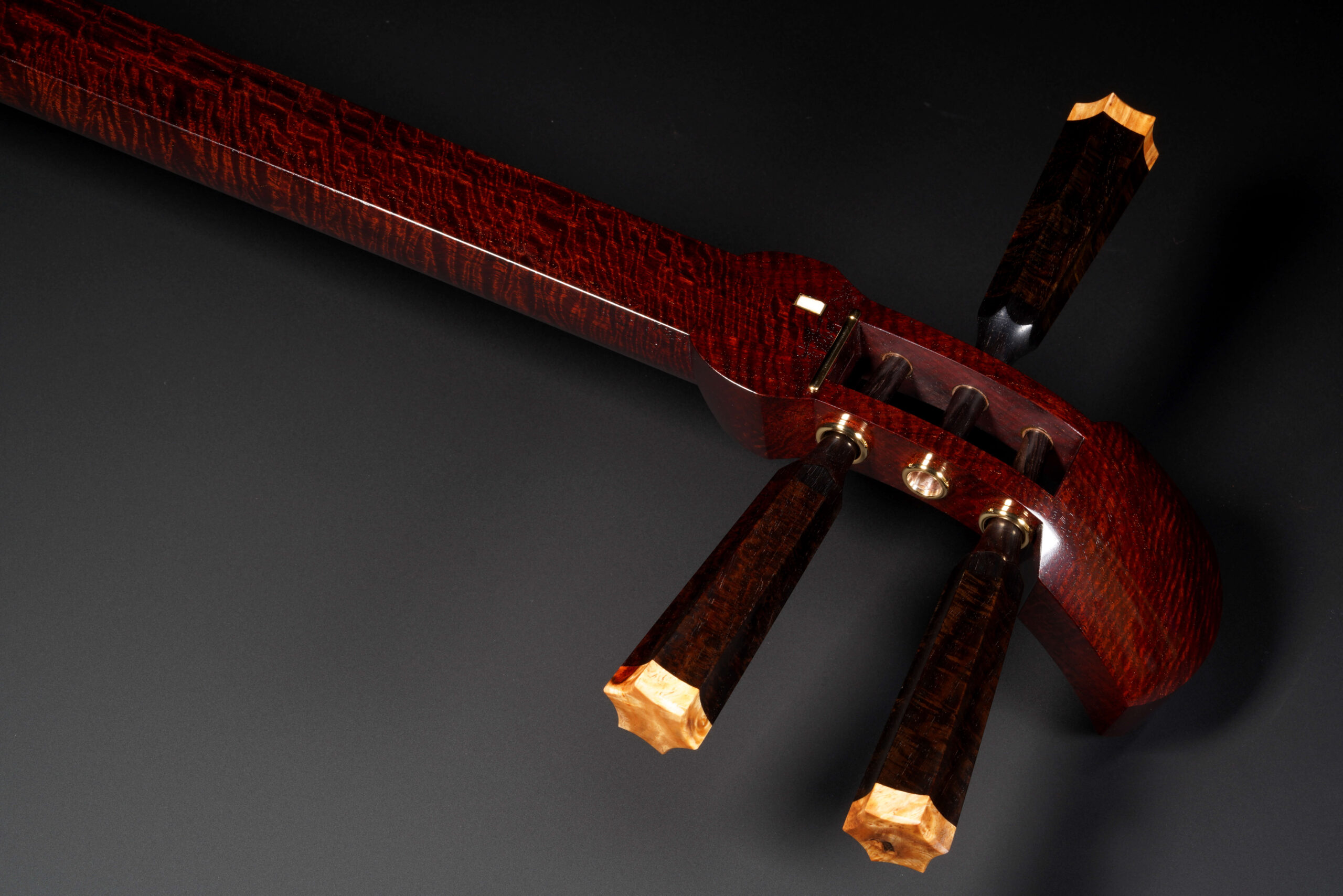 The Hardware: As well as the standard rindo, zagane, and azuma sawari, this shamisen also features kinbozo (gold-plated fittings) in the joints, traditionally reserved for only the highest-tier instruments.