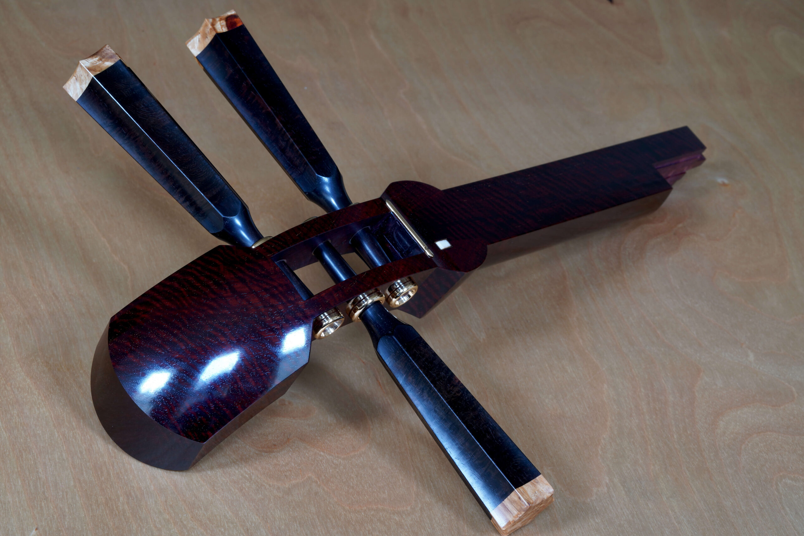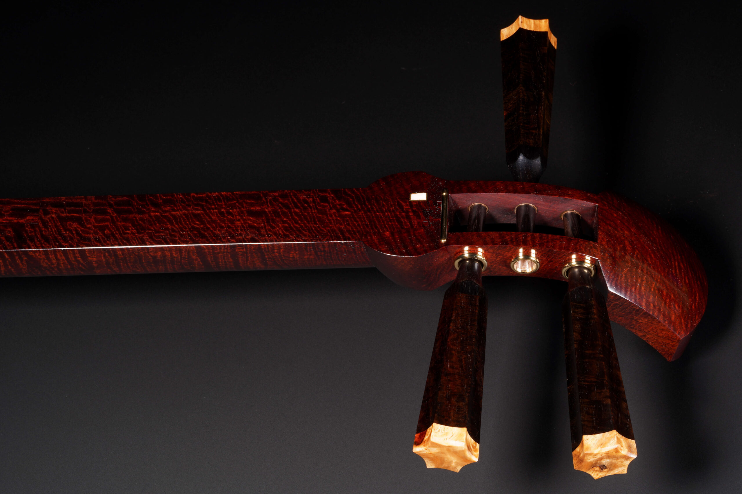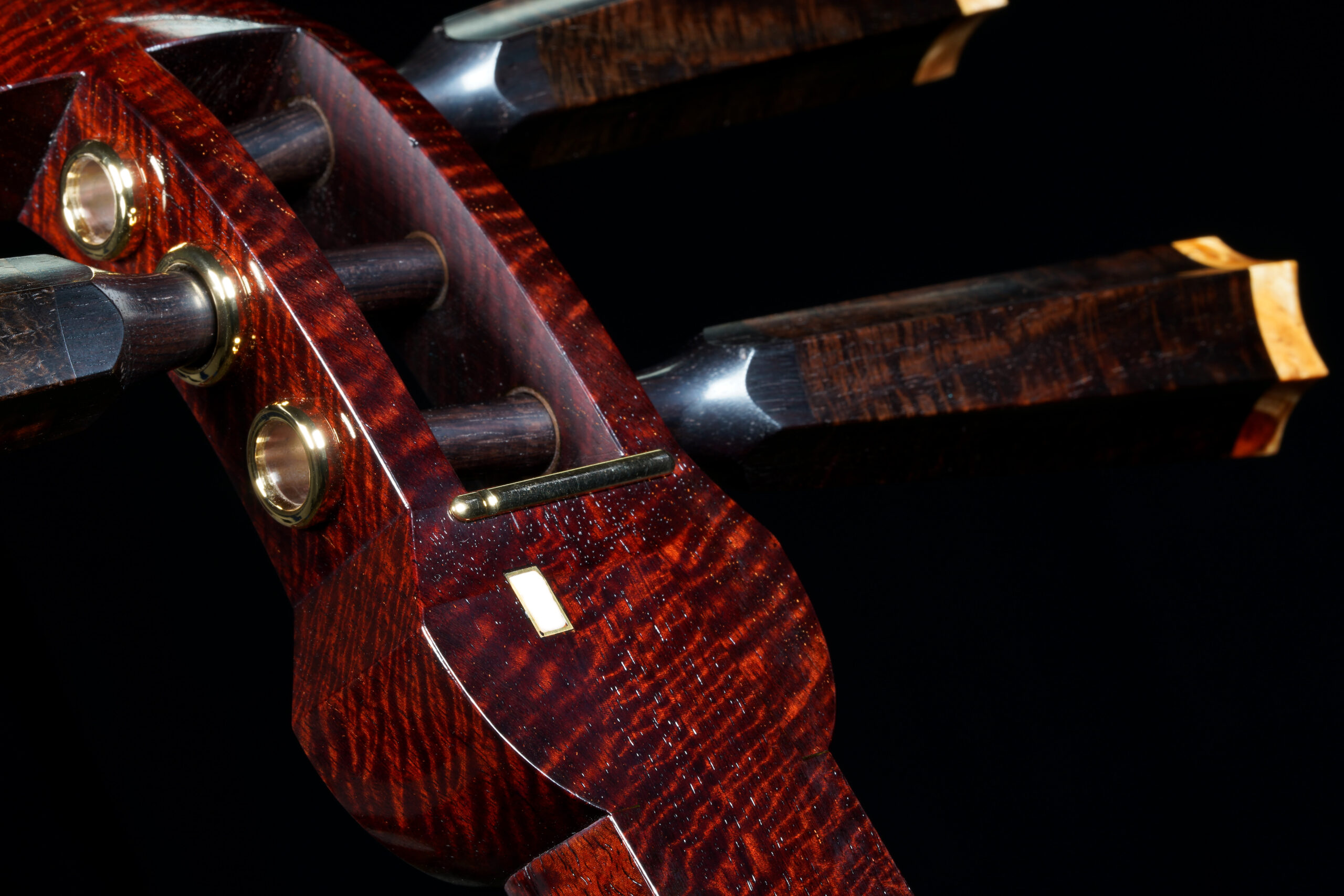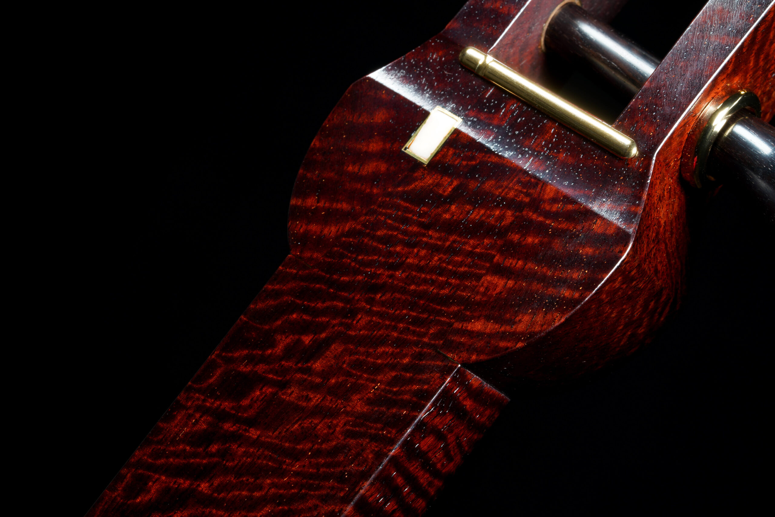 The Hardware: As well as the standard rindo, zagane, and azuma sawari, this shamisen also features kinbozo (gold-plated fittings) in the joints, traditionally reserved for only the highest-tier instruments.