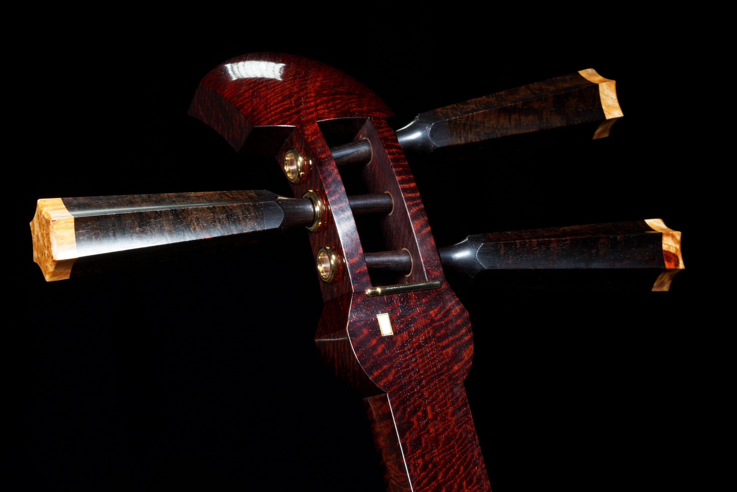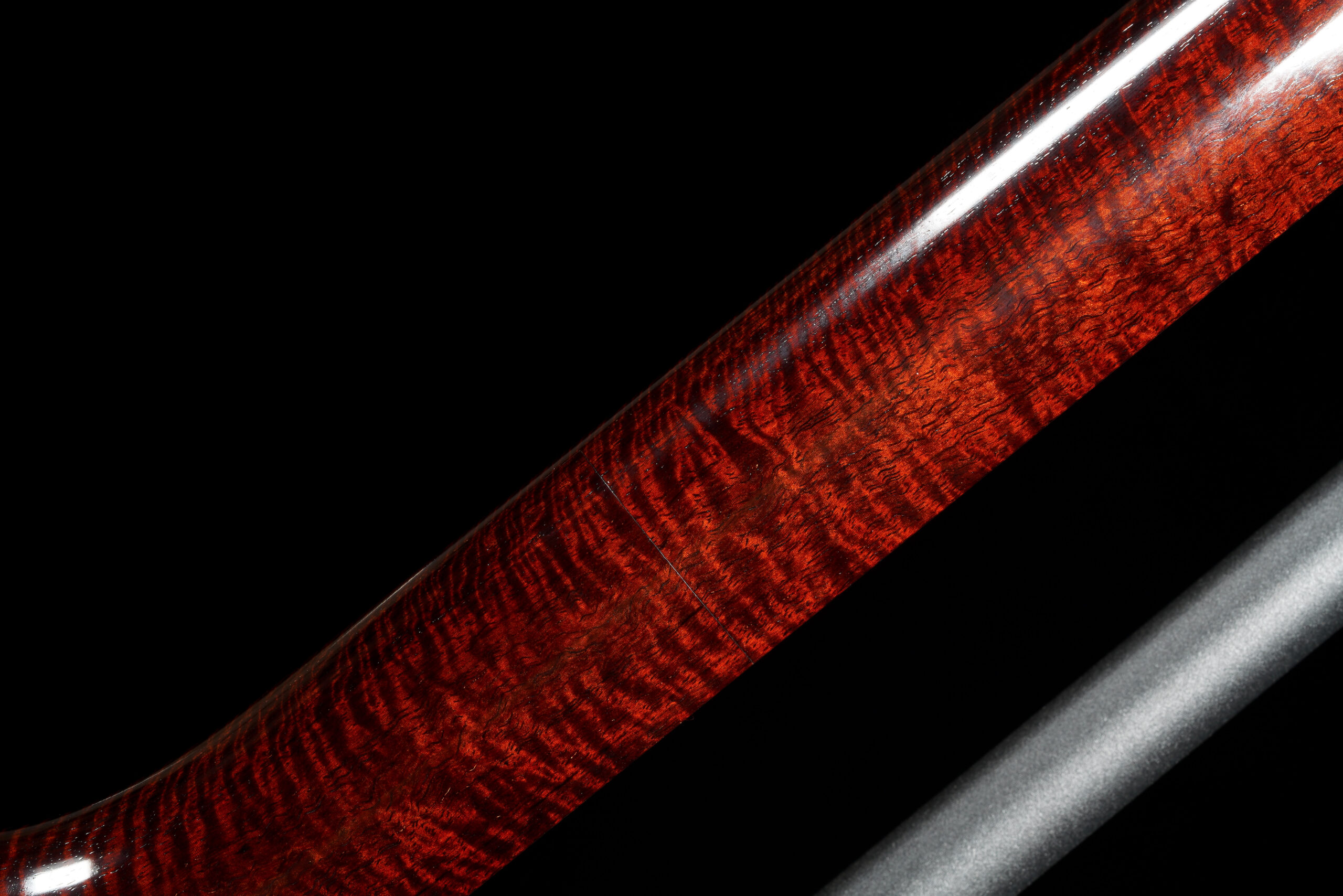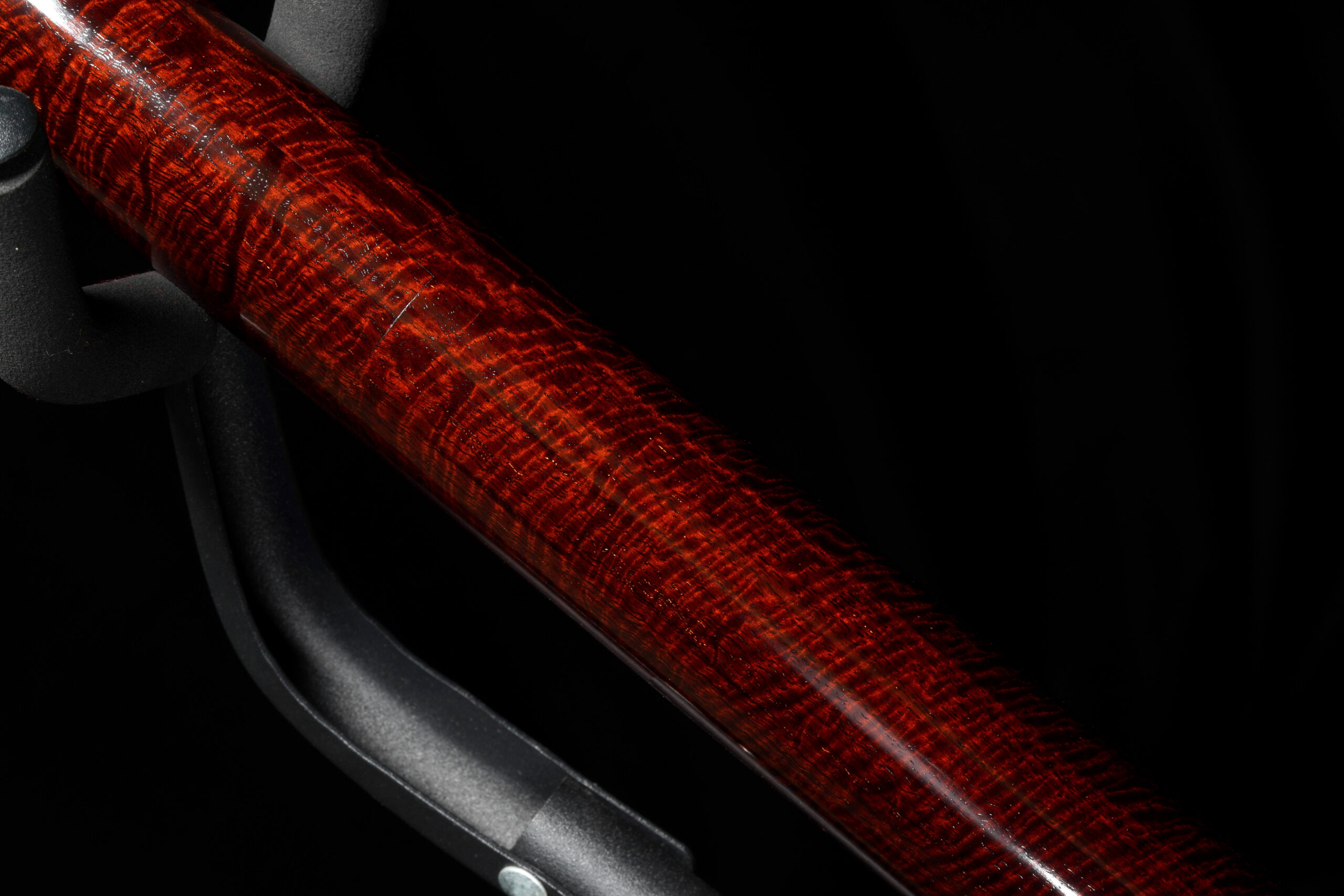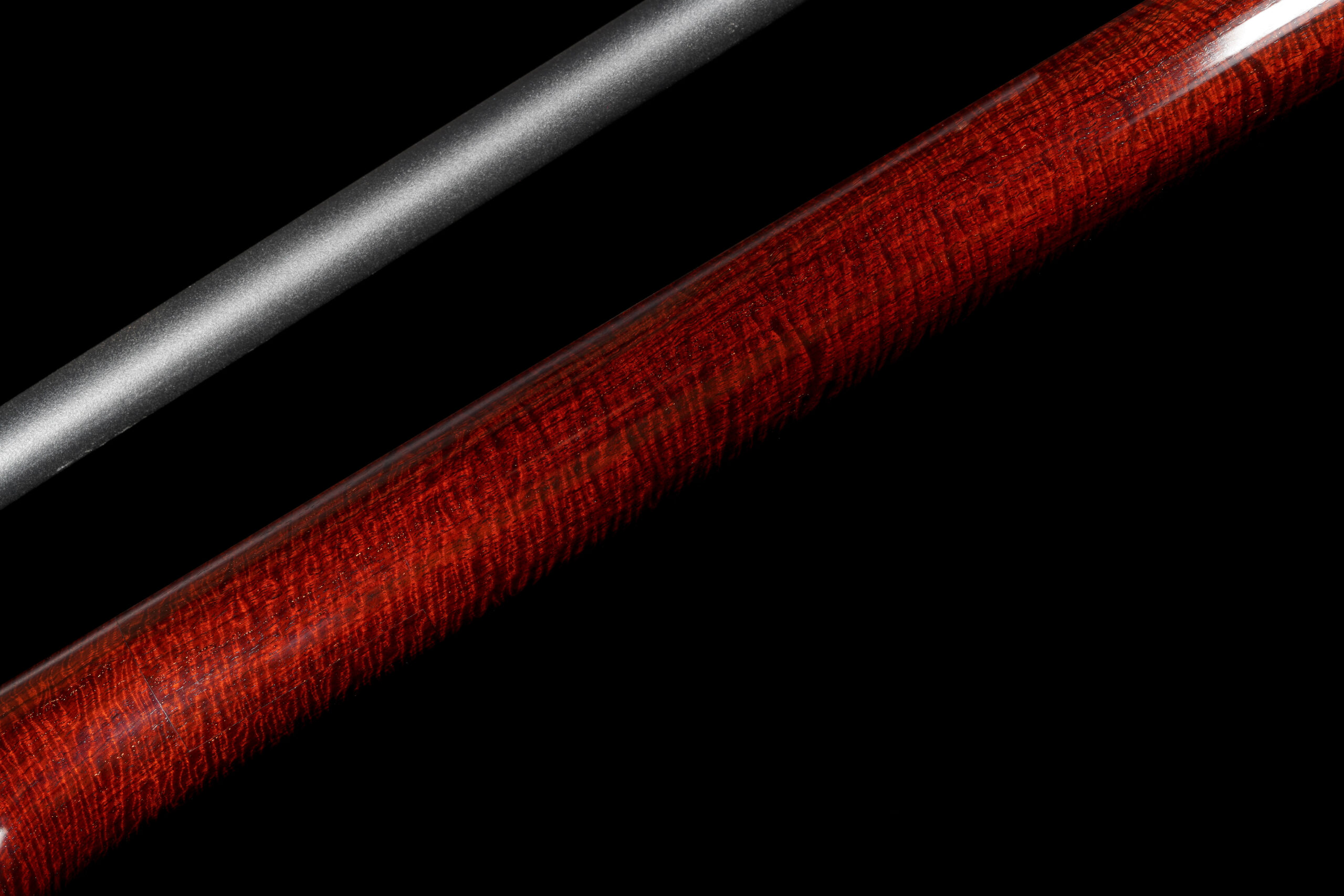 As the original itomaki wouldn’t fit into the new zagane (which are slightly larger than they used to be), I installed my Phoenix line of Elite Itomaki, the highest tier with incredible dark curly siamese rosewood and amboyna burl caps!
