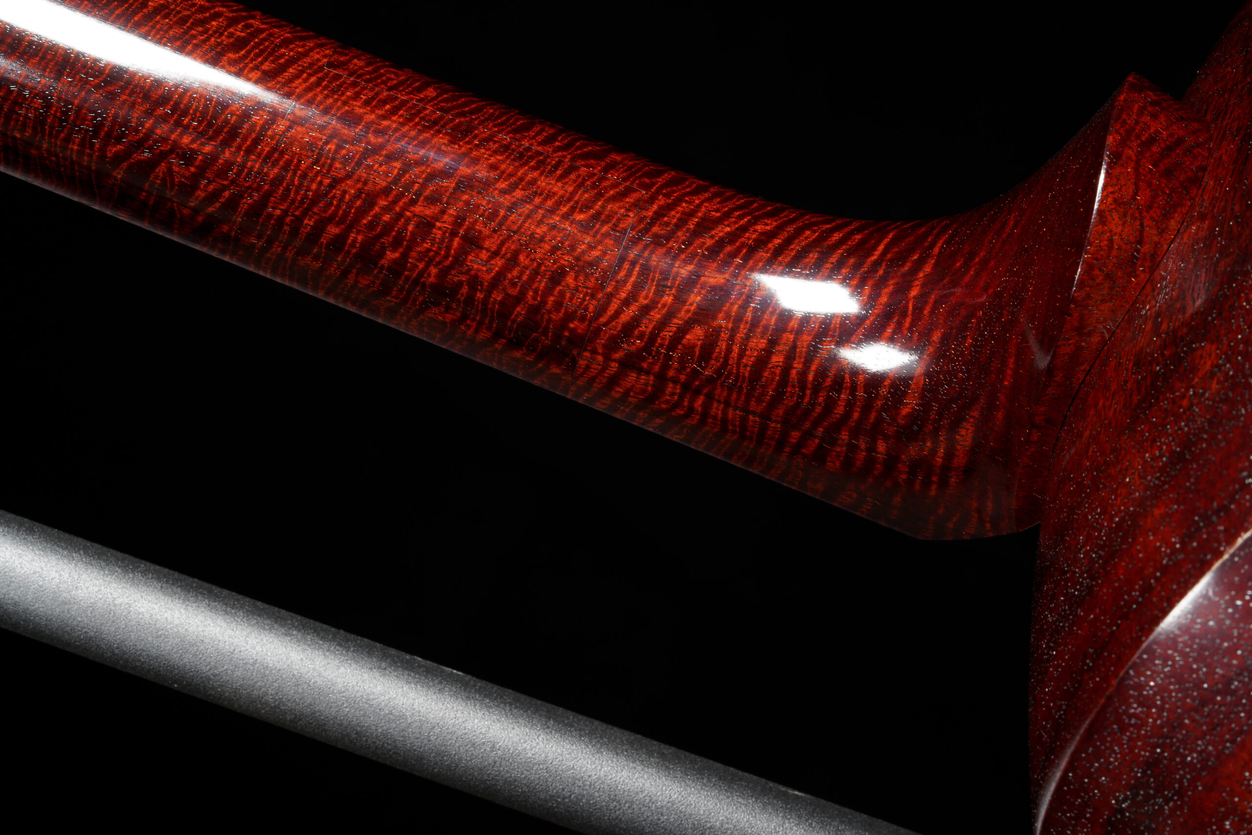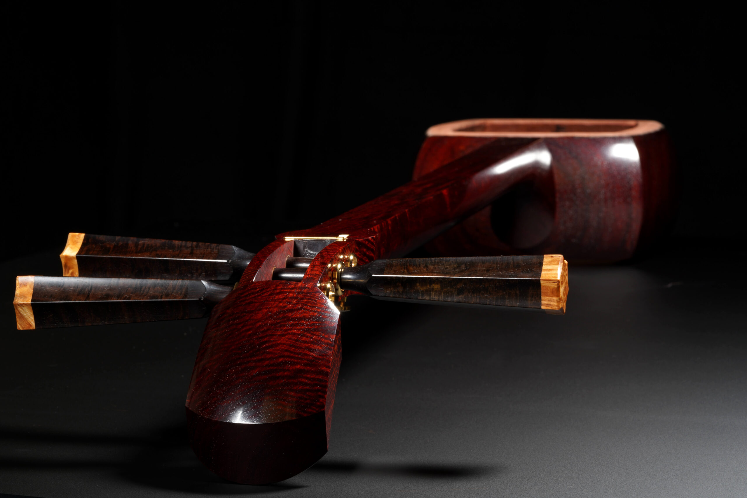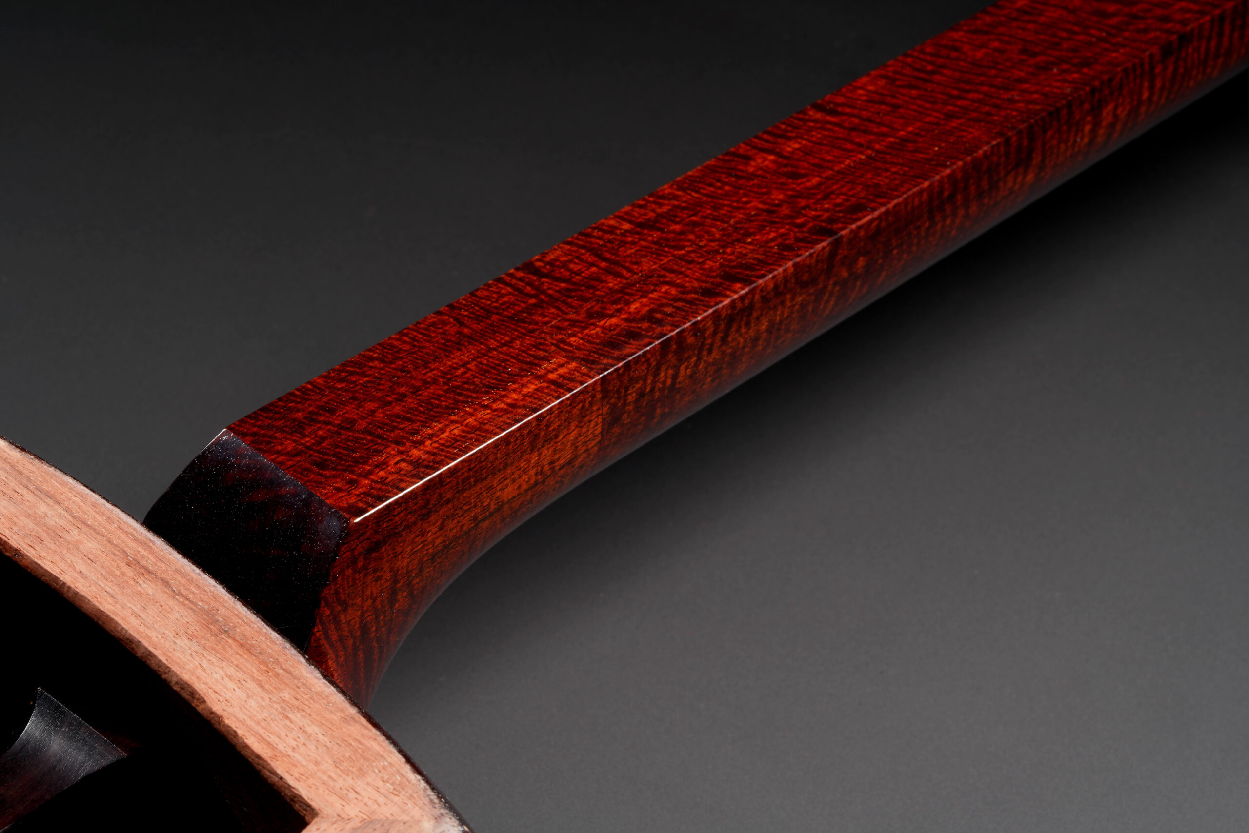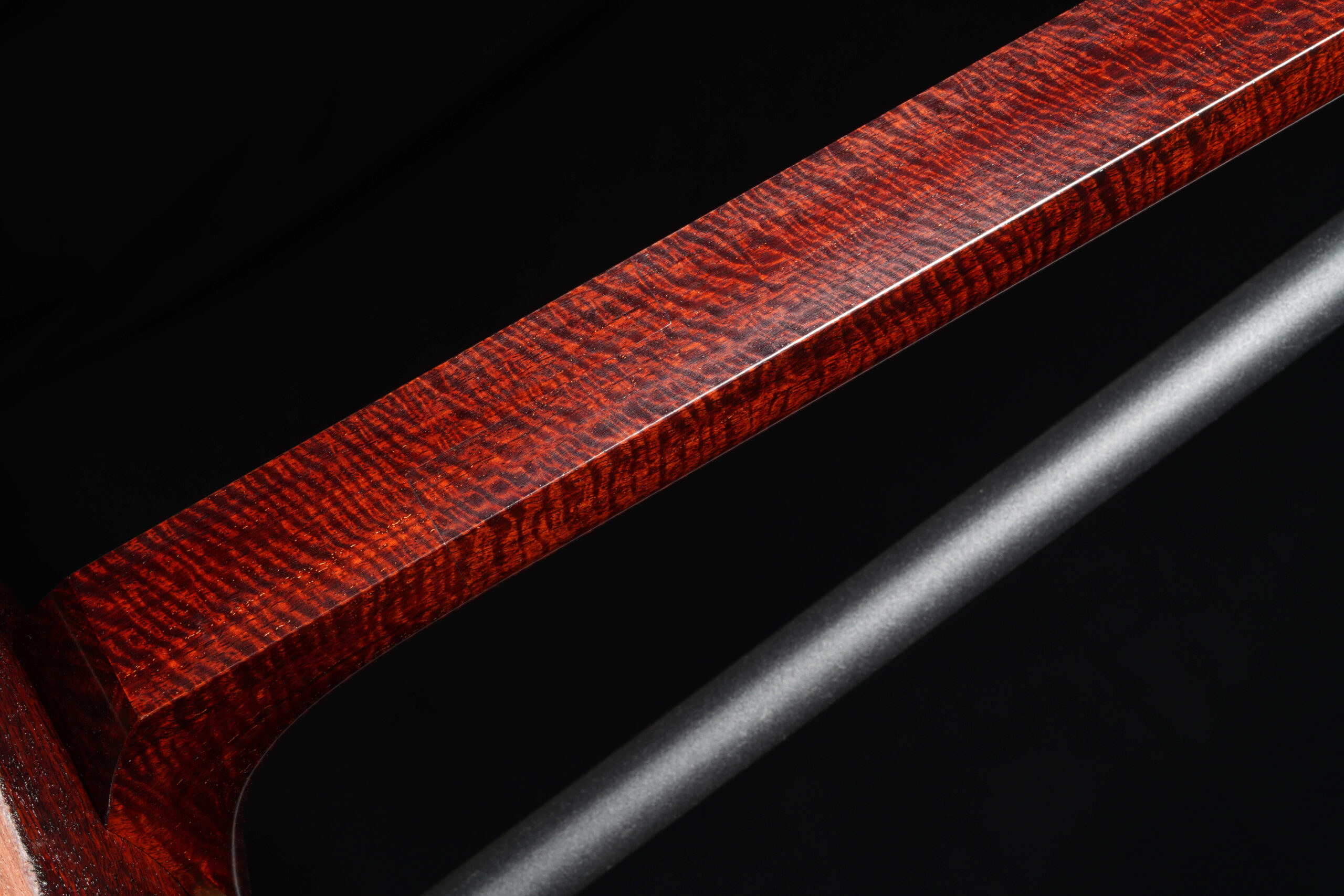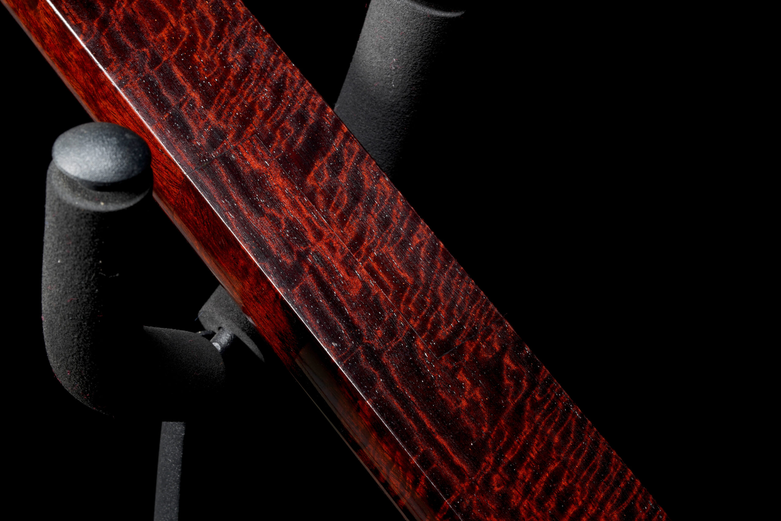 As the original itomaki wouldn’t fit into the new zagane (which are slightly larger than they used to be), I installed my Phoenix line of Elite Itomaki, the highest tier with incredible dark curly siamese rosewood and amboyna burl caps!